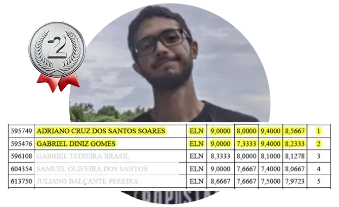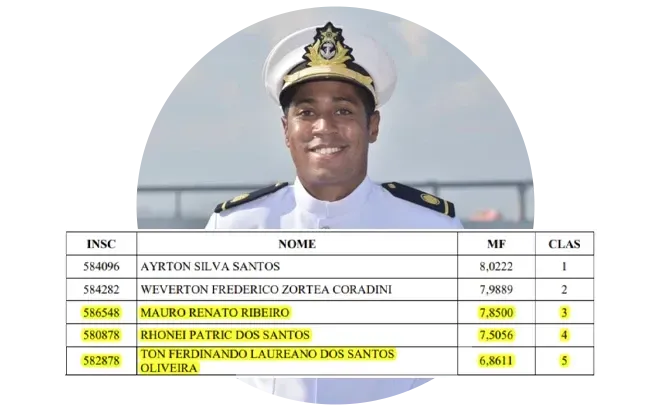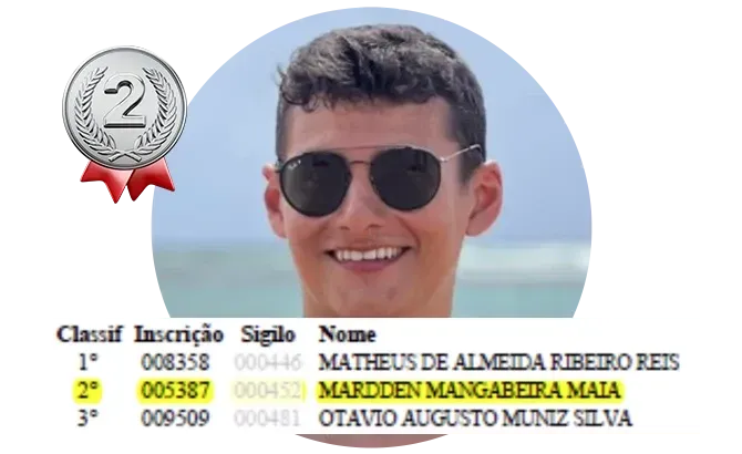 Ele conquistou sua aprovação no CP-CEM com a maior nota do Brasil em apenas 4 meses e foi classificado para o EAOEAR estudando apenas 1 mês, 4 horas por dia.