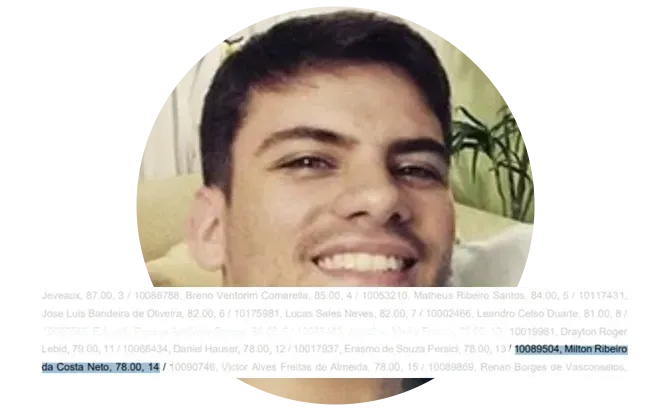 "Muito obrigado, Matheus! A você e a toda sua equipe, que me ajudaram demais na preparação. Seu direcionamento, os cursos, os simulados, os bizus de prova foram fundamentais para minha tão sonhada aprovação. Sucesso sempre a todos vocês!"